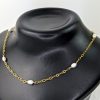 This exquisite 16-inch necklace has been created using gold-over-sterling silver ‘paperclip’ chain with tiny links on to which have been mounted 11 tiny and lustrous baroque freshwater pearls. The necklace has a bolt ring clasp.