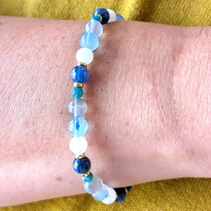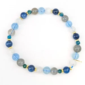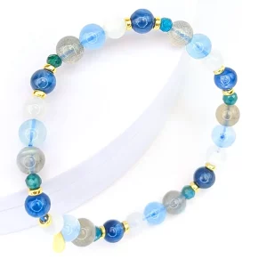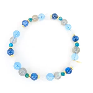 These fabulous blue-themed elasticated stretchy bracelets feature beads of exotic semi-precious gemstones, including Kyanite, Moonstone, Aquamarine, Apatite and Labradorite. The naturally glowing beads are enhanced with gold-plated sterling silver ring spacers. These attractive bracelets were previously sold on TV and in catalogues for more than 3X the price we are offering them for here so grab a bargain!