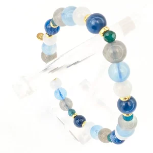 These fabulous blue-themed elasticated stretchy bracelets feature beads of exotic semi-precious gemstones, including Kyanite, Moonstone, Aquamarine, Apatite and Labradorite. The naturally glowing beads are enhanced with gold-plated sterling silver ring spacers. These attractive bracelets were previously sold on TV and in catalogues for more than 3X the price we are offering them for here so grab a bargain!