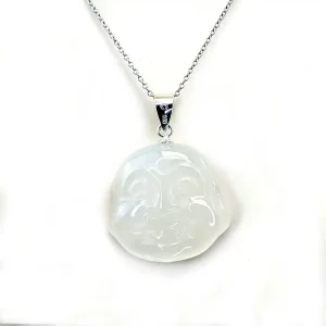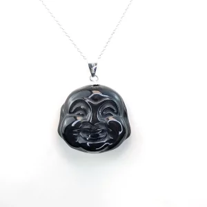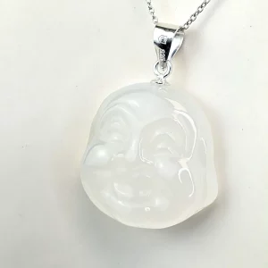These large laughing Buddha pendants are beautifully hand-carved from a choice of either shiny black onyx or translucent white agate. Each Buddha measures approximately 30mm x 30mm and is finished with a sterling silver bail large enough to take a robust chain.
