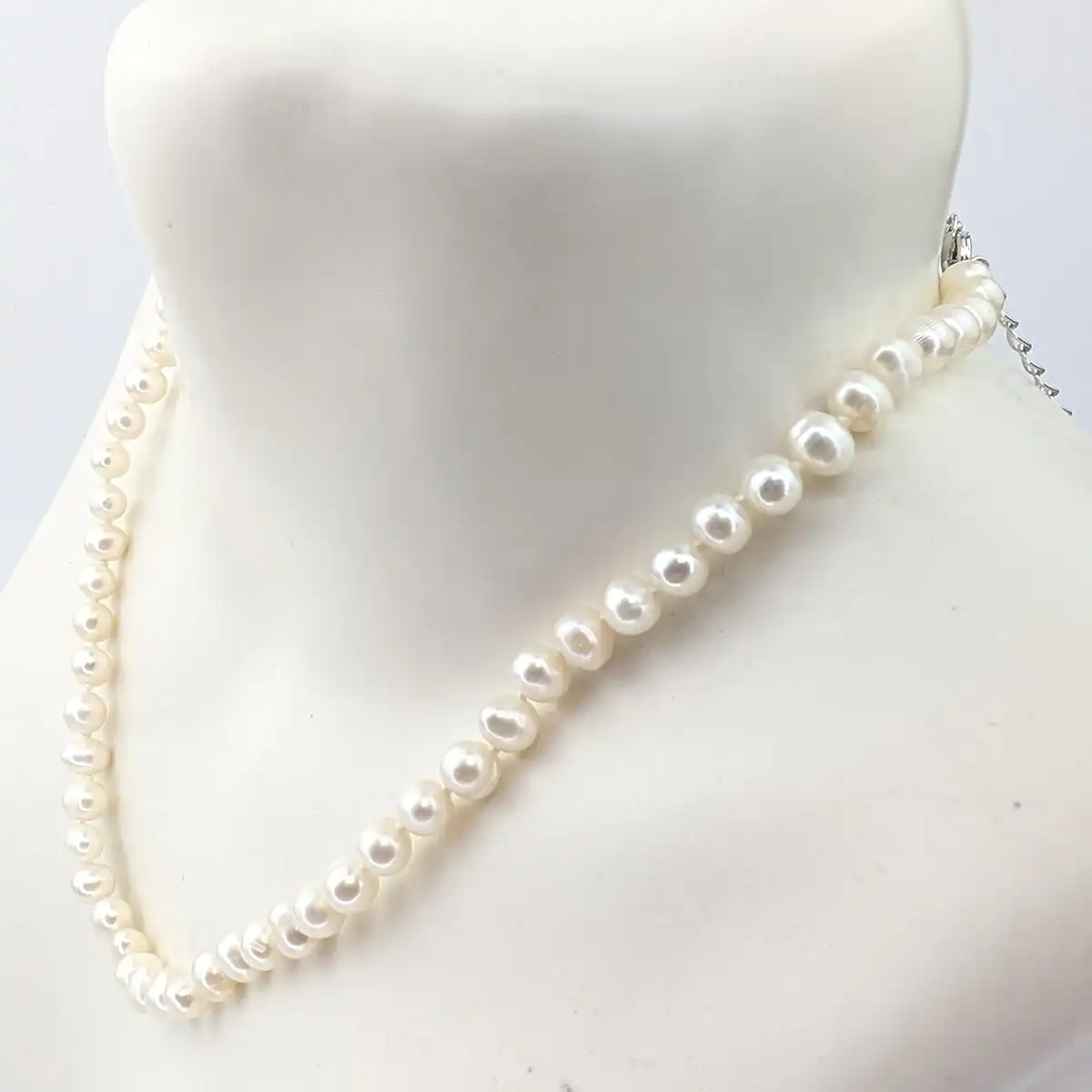 Near-Round 6mm Pearl Necklace with Silver Clasp